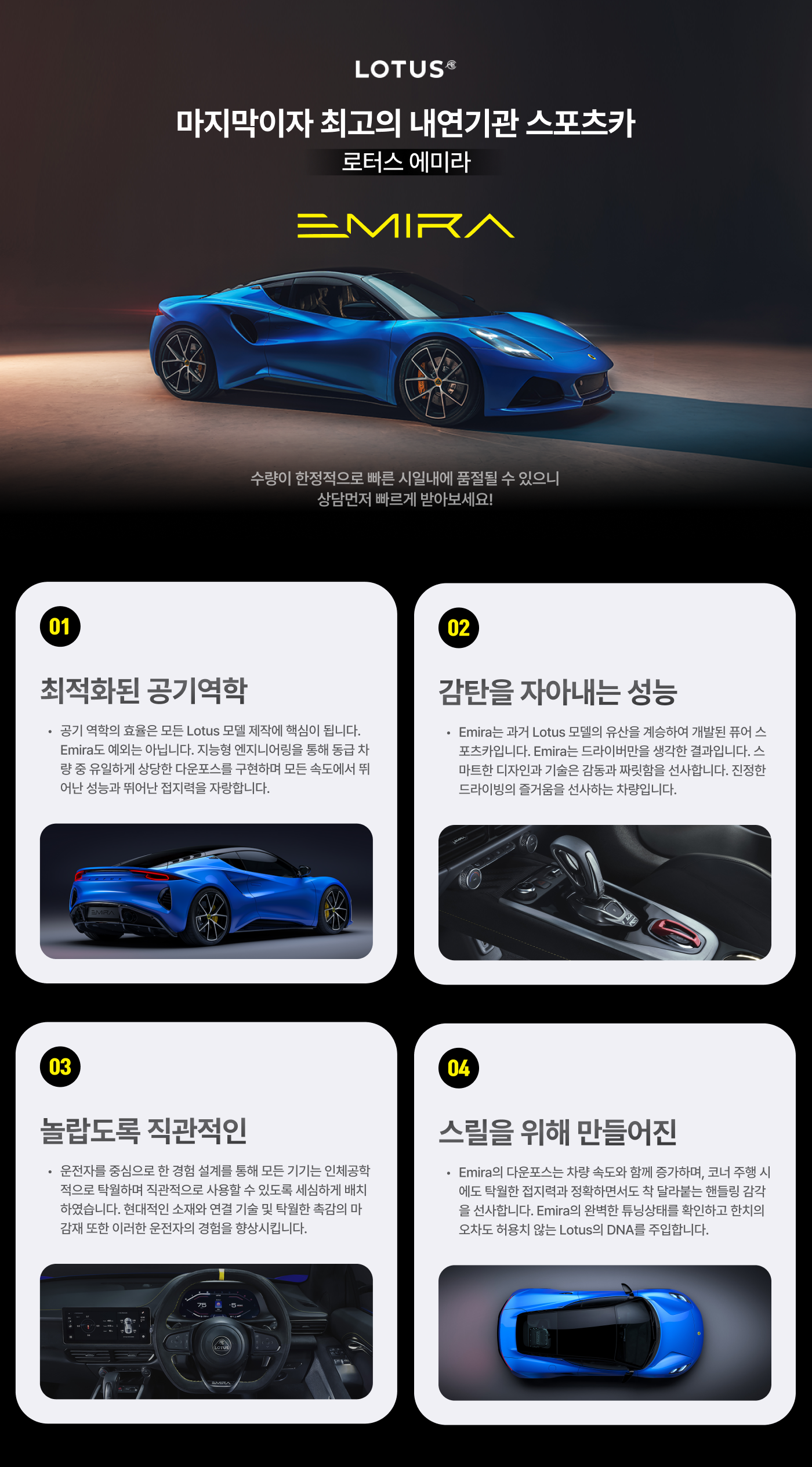 고객님께서 1월 20일부터 심사를 보시며, 계약일까지 한달내로 색상은 블랙 아니면 안하신다고 하셨습니다. 매일 블랙나오기만을 기다리다가 재고를 찾아서 인도까지 도와드렸습니다. 고객님도 너무 만족하시고 지인분들도 소개해드린다고 하셔서 뿌듯했습니다. 담당매니저 : 김현지
